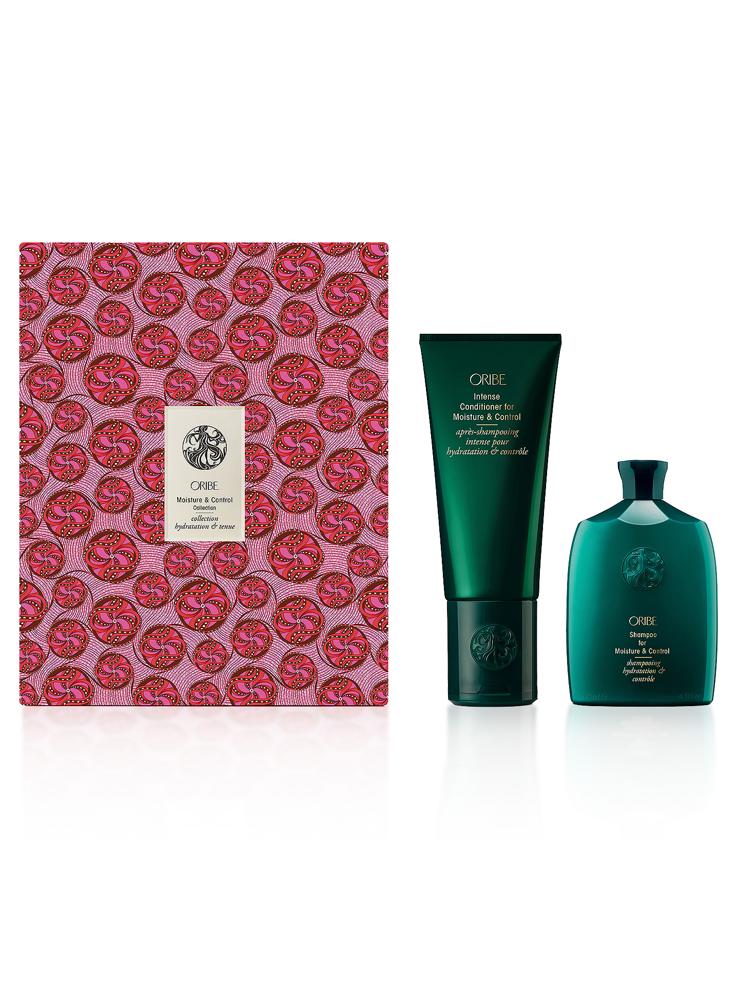 Oribe Moisture & Control Collection 2024 -lahjapakkaus on osa Oribe x Thandiwe Muriu Holiday 2024 -sarjaa. Lahjapakkausten suunnittelusta on vastannut taiteilija ja suunnittelija Thandiwe Muriu, jonka värikäs ja geometrinen tyyli tekee pakkauksista näyttäviä ja ainutlaatuisia.